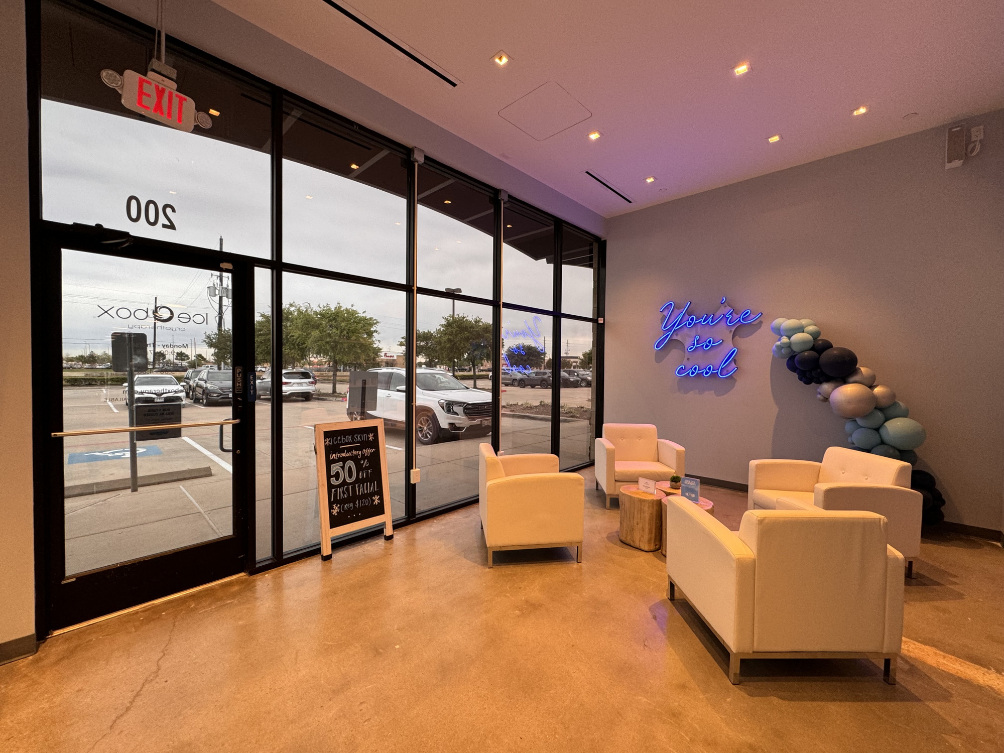 Press and hold the white button, slide to uncover exterior and interior pictures.