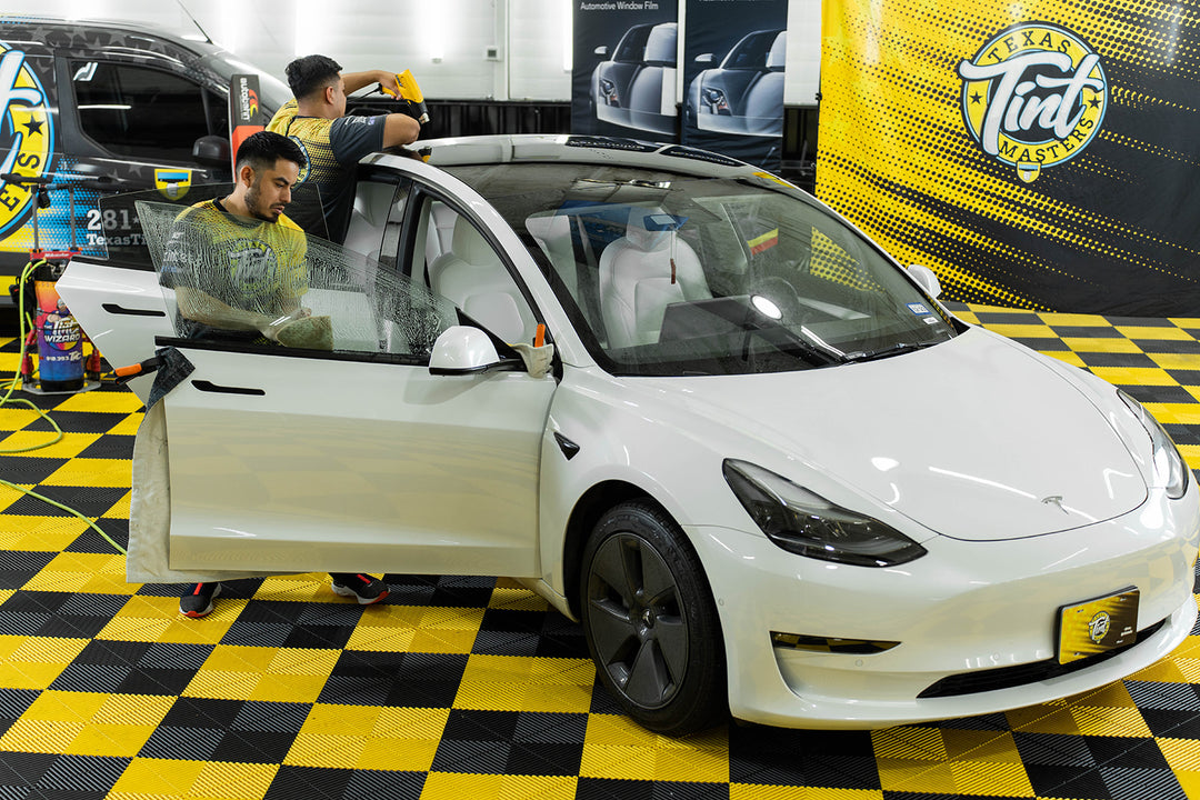 We began by assessing the space and work area by taking all precautions to cover any floors and items that will be in the vicinity of the installation to ensure no residual moisture damages anything surrounding. This also provides the work space floors a layer of protection from any equipment Texas Tint Masters™ may use during your Houston Commercial Window Film installation.